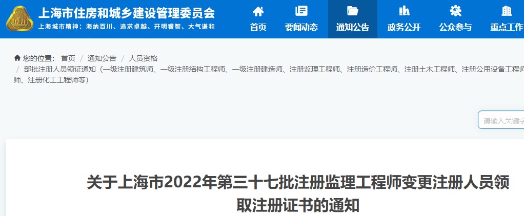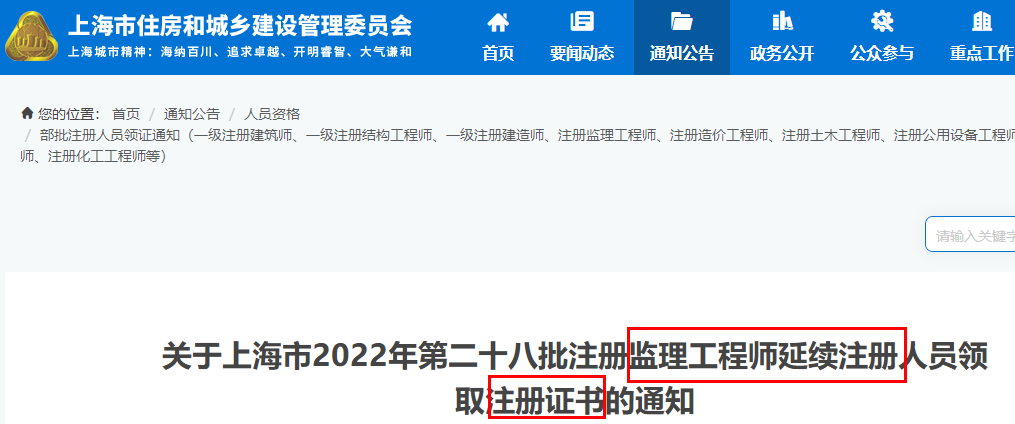 关于上海市2022年第三十二批注册监理工程师延续注册人员领取证书通知