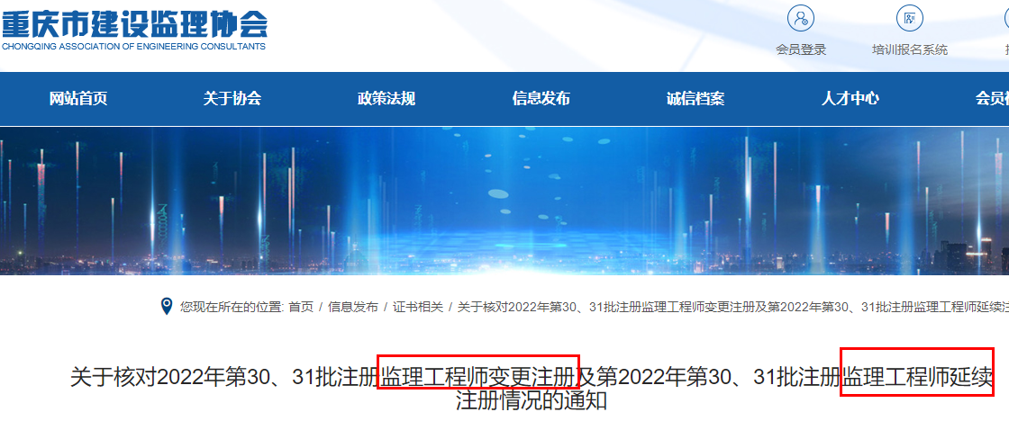 重庆关于核对2023年第5批注册监理工程师变更注册情况的通知