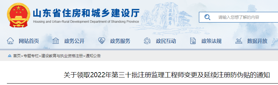 山东关于领取2022年第十批注册监理工程师变更及延续注册防伪贴的通知