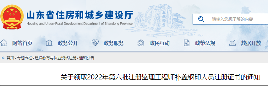 山东领取2022年第六批注册监理工程师补盖钢印人员注册证书的通知