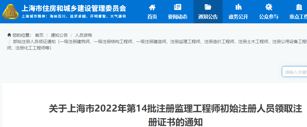 关于上海2022年第14批注册监理工程师初始注册人员领取注册证书通知