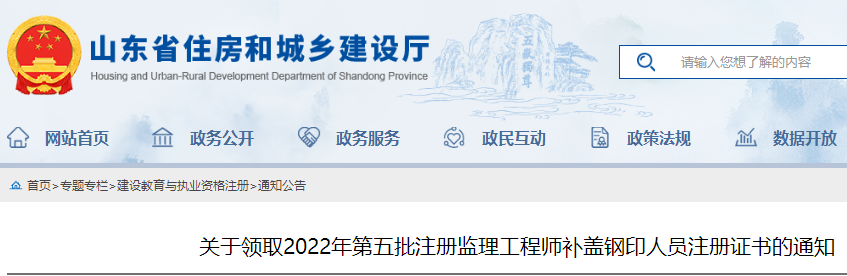 山东领取2022年第五批注册监理工程师补盖钢印人员注册证书的通知