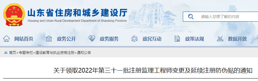 山东领取2022年第三十一批注册监理工程师变更及延续注册防伪贴的通知
