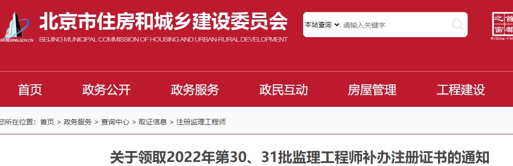 北京市关于领取2022年第30、31批监理工程师补办注册证书的通知