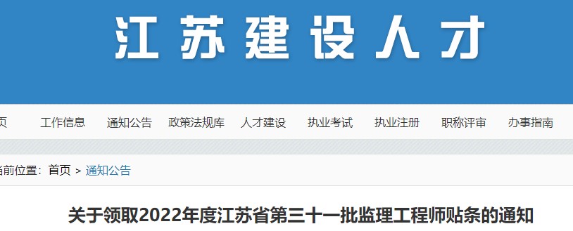 江苏关于2022年度第二十五批监理工程师贴条领取的通知