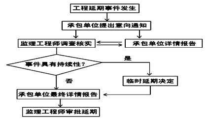 当工程延期事件发生后,承包单位应在合同规定的有效期内以书面形式通知监理工程师(即工程延期意向通知)。