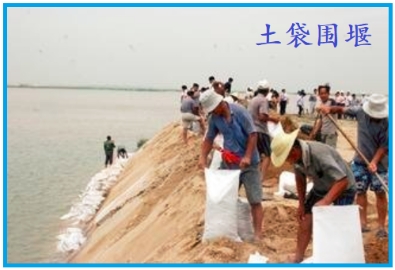 2.土袋围堰:围堰两侧用草袋、麻袋、玻璃纤维袋或无纺布袋装土堆码。围堰中心部分可填筑黏土及黏性土芯墙。