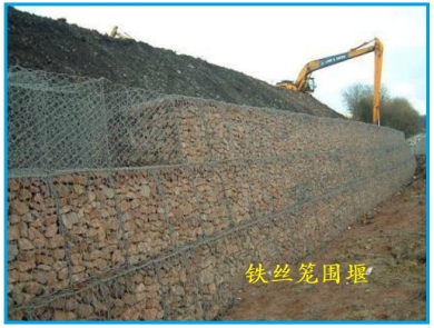 5.竹、铁丝笼围堰:采用编制成型的竹笼、铁丝笼或铅丝笼形成框架,其中放入石块,堆叠形成挡水的结构。