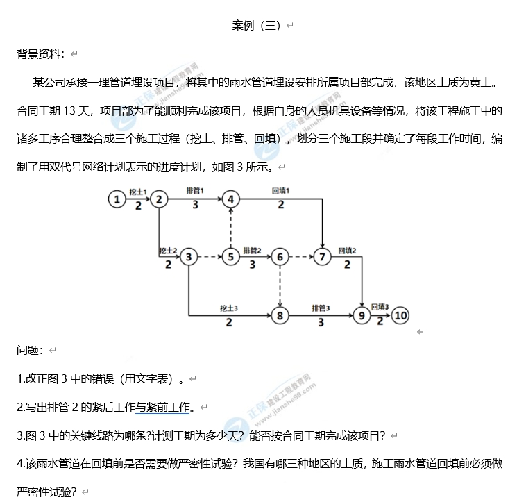 2022年一级建造师考试(补考)市政工程试题及答案解析案例三