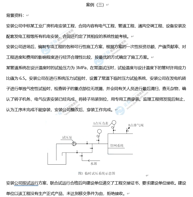 2022年一级建造师考试(补考)机电工程试题及答案解析案例三