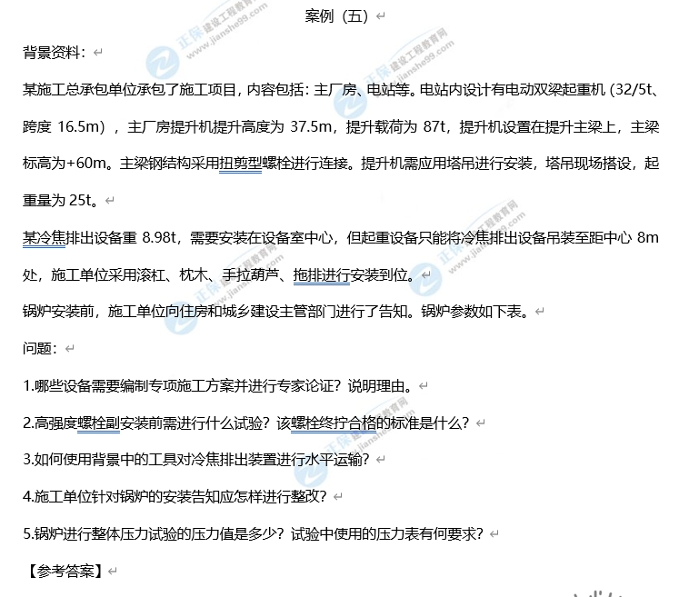 2022年一级建造师考试(补考)机电工程试题及答案解析案例五