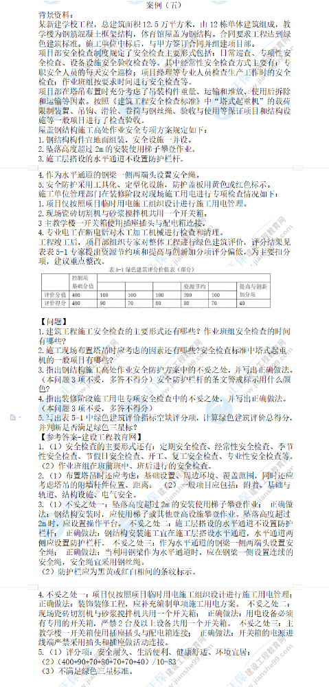 2022年一级建造师考试(补考)建筑工程试题及答案解析案例五