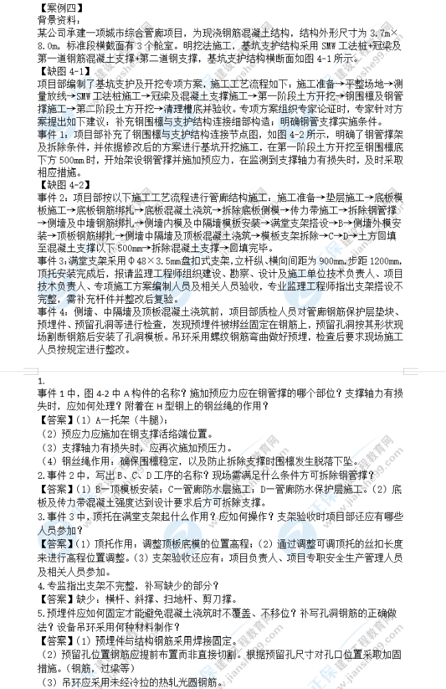 2022年一级建造师考试(补考)建筑工程试题及答案解析案例四