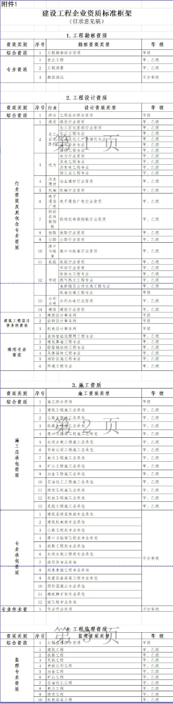 住建部建设工程企业资质标准框架(征求意见稿)