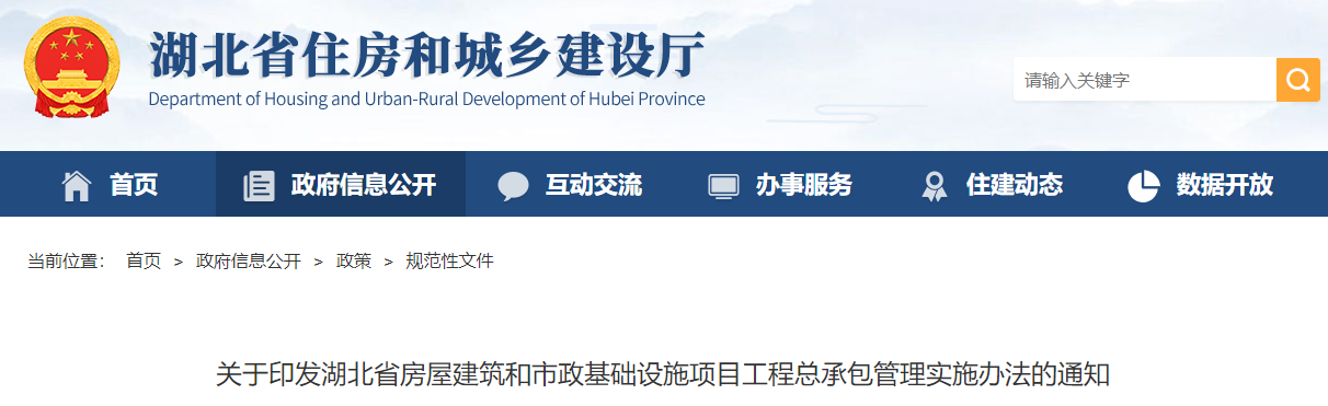 关于印发湖北省房屋建筑和市政基础设施项目工程总承包管理实施办法的通知