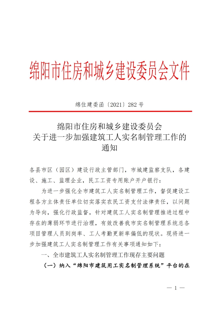 绵阳市住建委:项目经理需全部实名考勤!未落实这2项的,立案查处!