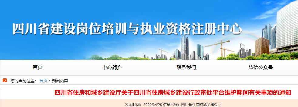 关于四川省住房城乡建设行政审批平台维护期间有关事项的通知