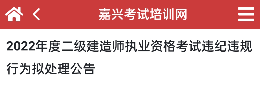 2022年度二级建造师执业资格考试(嘉兴考区)违纪违规行为拟处理公告