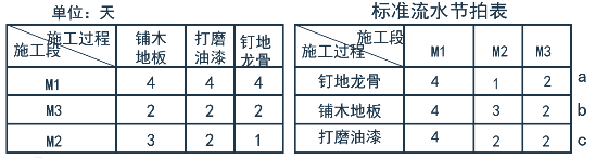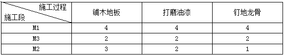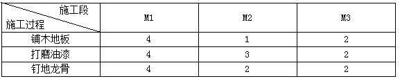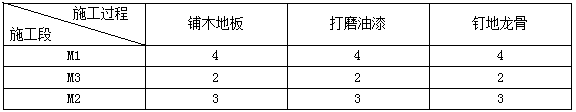 (1)将3室1厅主卧与次卧木地板施工按施工工艺划分为3个施工过程:钉地龙骨、铺木地板、打磨油漆。