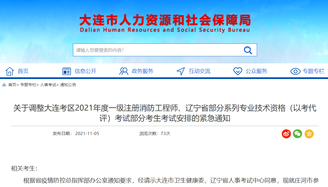 关于调整大连2021一级消防工程师考试部分考生考试安排紧急通知
