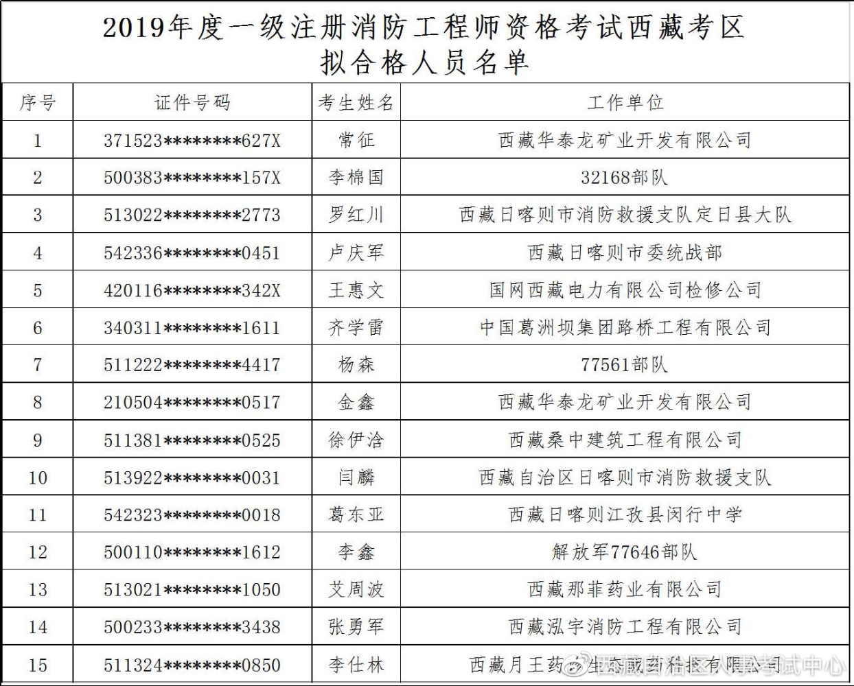 2019年一级注册消防工程师资格考试成绩合格、拟取得资格证书人员公示