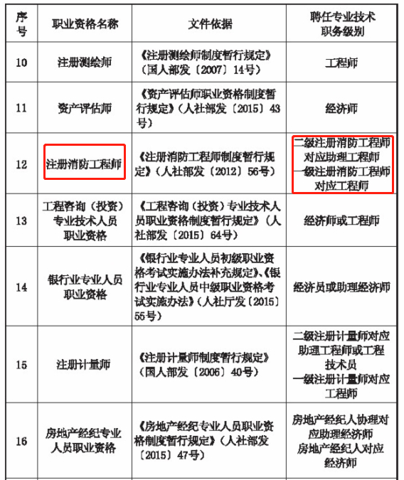 秦皇岛人社局:一级消防工程师对应助理工程师职称
