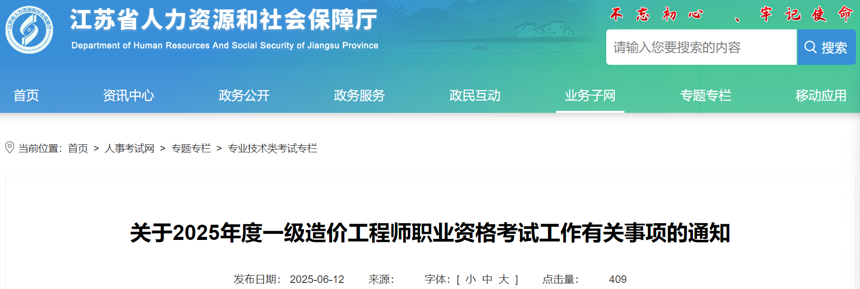 江苏省2025年度一级造价工程师职业资格考试工作有关事项的通知