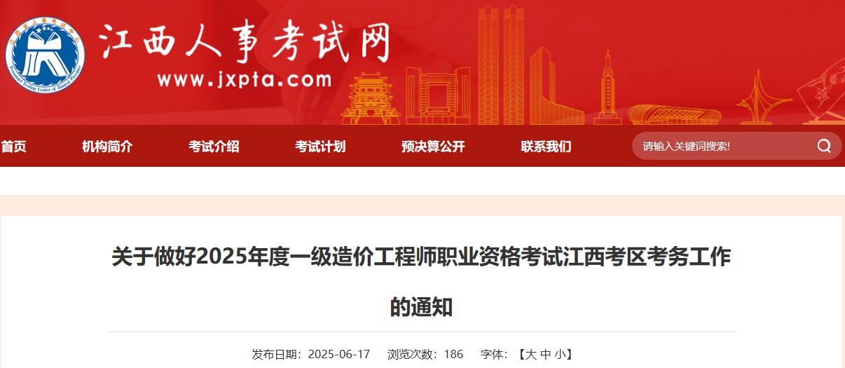 江西省2025年度一级造价工程师职业资格考试报名通知
