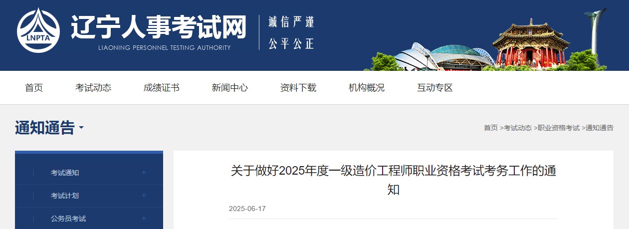 辽宁省2025年度一级造价工程师职业资格考试报考通知