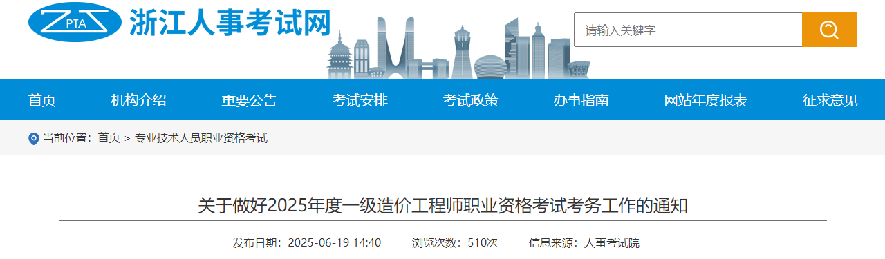 浙江省2025年度一级造价工程师职业资格考试考务工作的通知