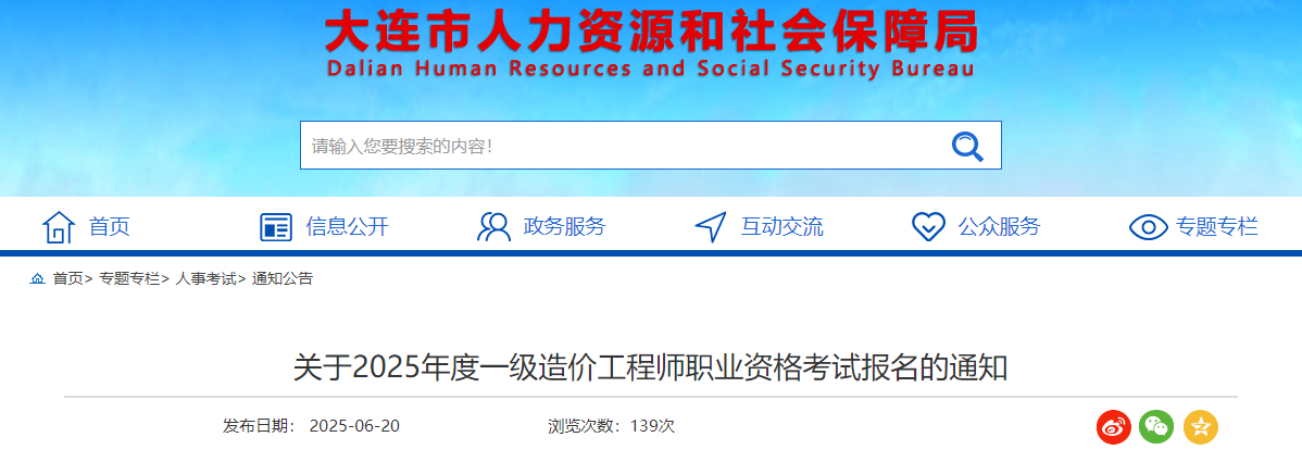 大连考点2025年度一级造价工程师职业资格考试报名通知