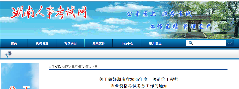 湖南省2025年度一级造价工程师职业资格考试考务工作的通知