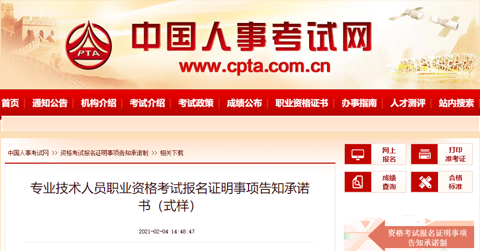 专业技术人员职业资格考试报名证明事项告知承诺书(式样)