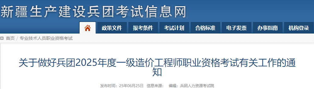 兵团2025年度一级造价工程师职业资格考试有关工作的通知