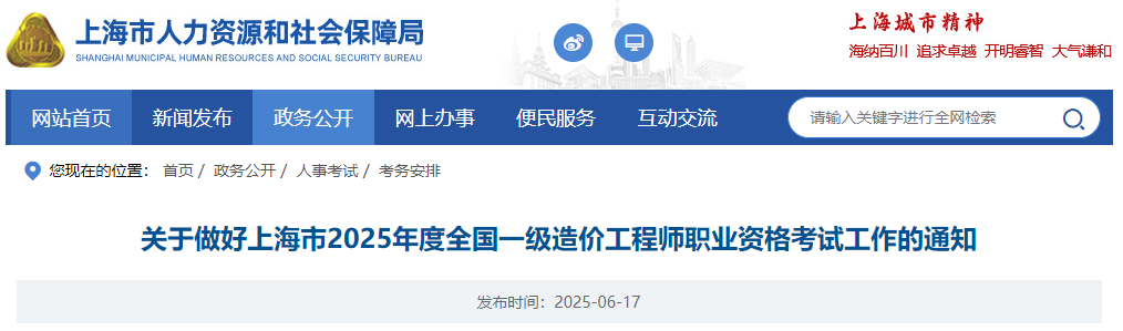 上海市2025年度全国一级造价工程师职业资格考试工作的通知