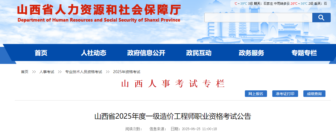 山西省2025年一级造价工程师考试时间:10月18、19日