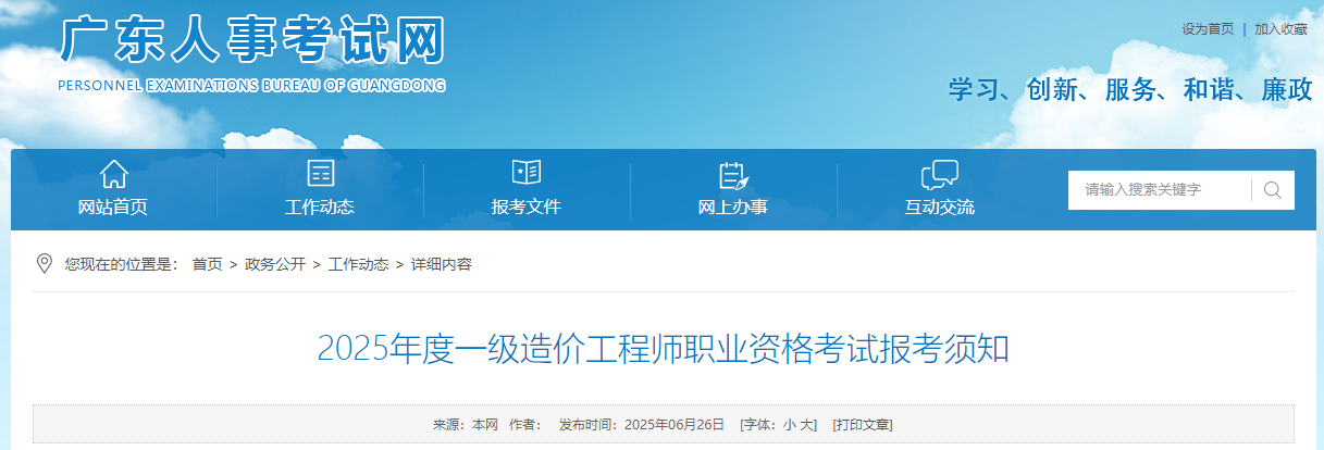 广东考区2025年度一级造价工程师职业资格考试报考须知