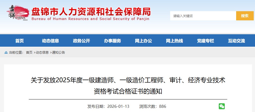 辽宁省盘锦市2025年度一级造价工程师资格证书发放通知已发布,详情如下: