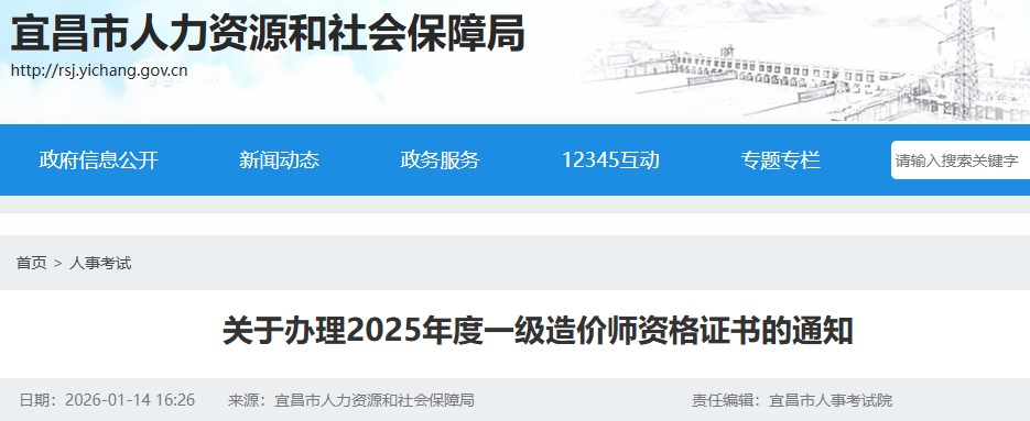 湖北省宜昌市2025年度一级造价工程师资格证书领取通知已发布,详情如下: