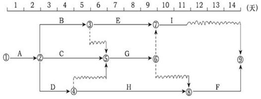 某分部工程双代号时标网络计划如下图所示,下列选项正确的有( )