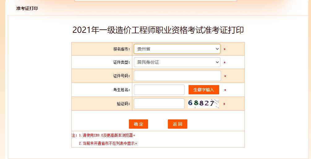 中国人事考试网 2021贵州省一级造价师考试准考证打印入口公布!