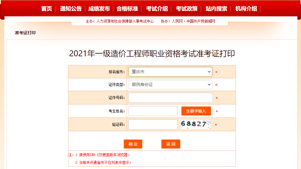 中国人事考试网 2021重庆市一级造价师考试准考证打印入口已公布!
