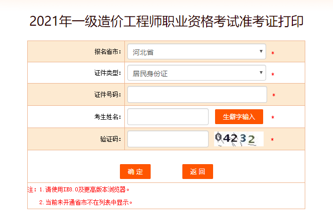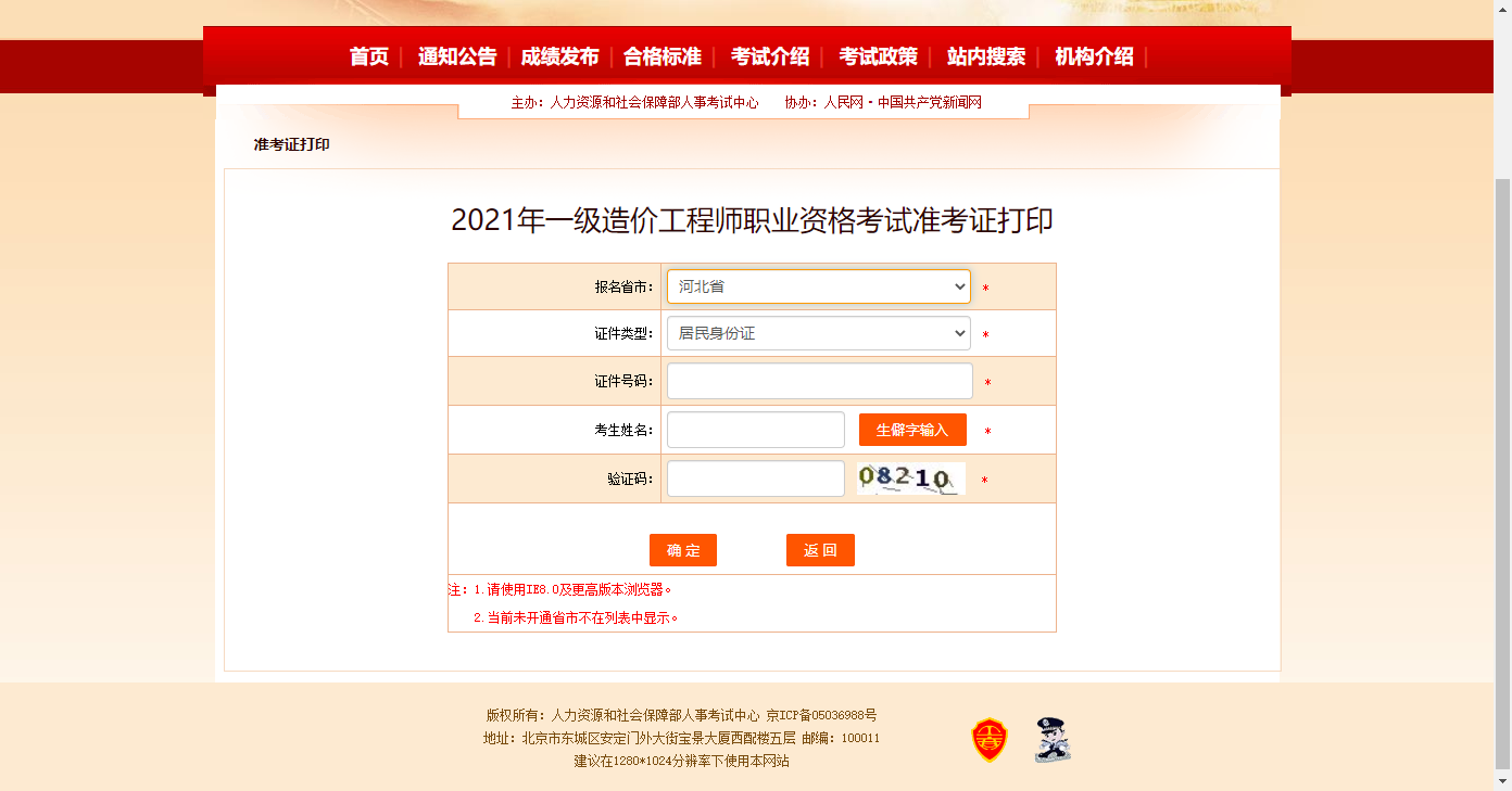 中国人事考试网 2021河北一级造价师考试准考证打印入口已公布