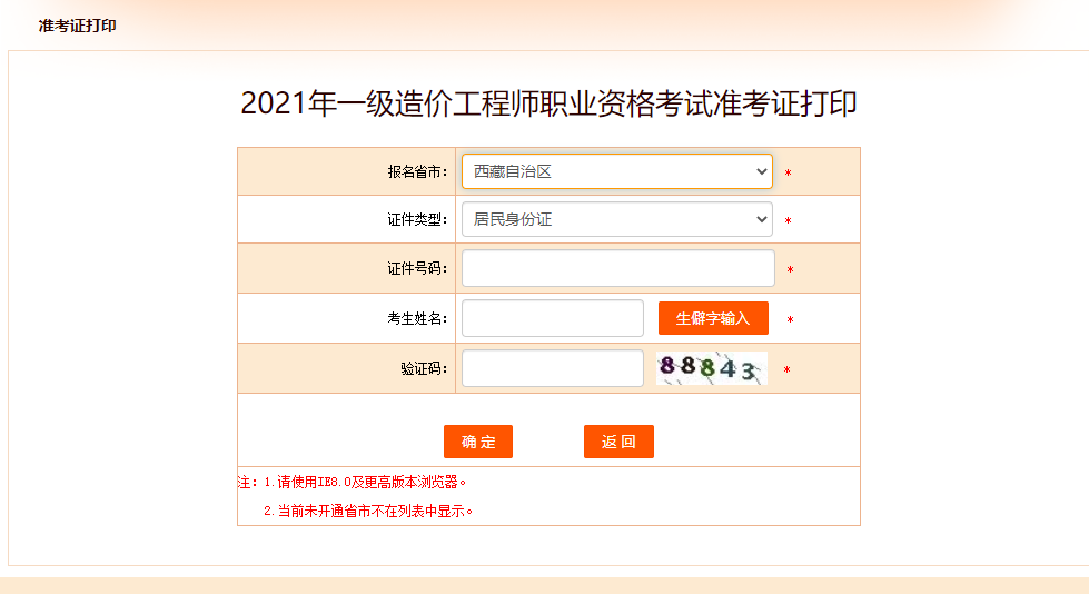 2021年西藏一级造价工程师资格考试准考证打印通知