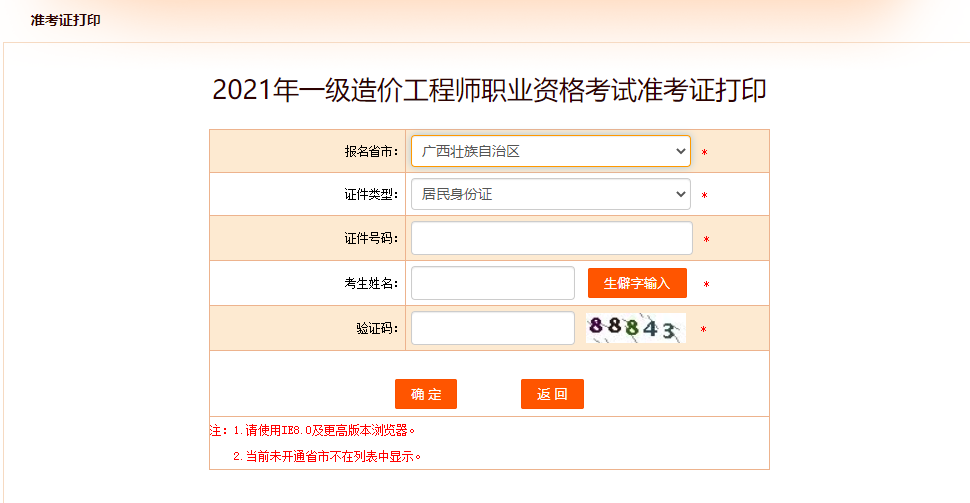 中国人事考试网 广西2021年一级造价师准考证打印时间已确定
