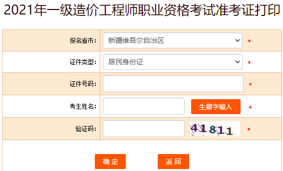 中国人事考试网 新疆2021年一级造价师准考证打印入口公布