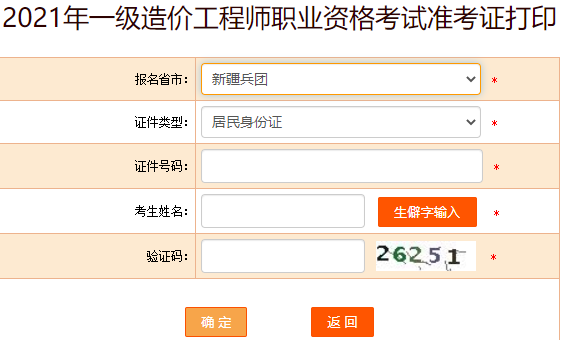 中国人事考试网 兵团2021年一级造价师准考证打印入口公布