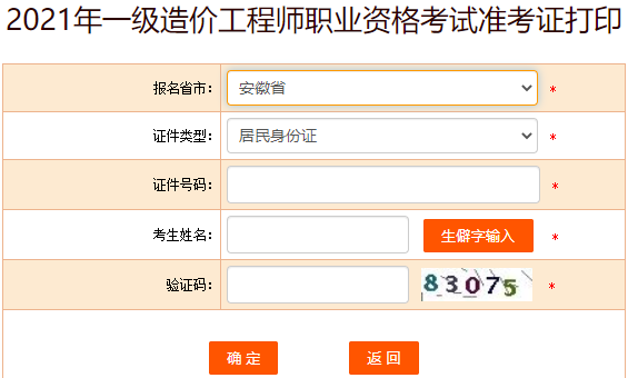 中国人事考试网 安徽2021年一级造价师准考证打印入口已开通