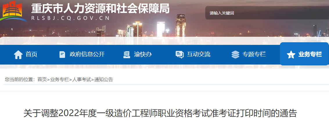 重庆2022年一级造价师准考证打印时间通告 调整为11月8日