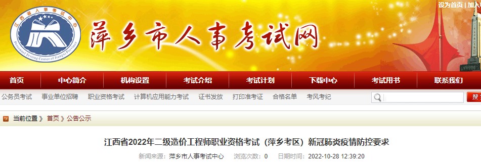 江西省2025年度二级造价工程师职业资格考试考务工作通知